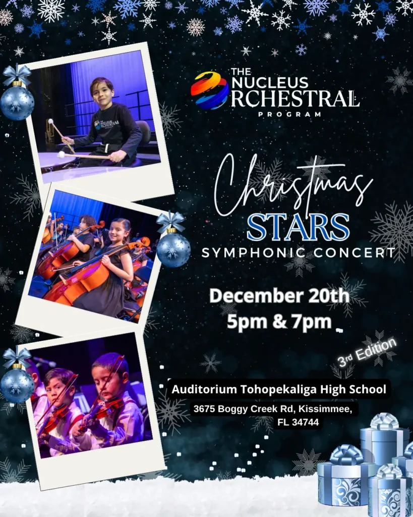 On December 20th, The Nucleus Orchestral Program will proudly present its long-awaited Christmas Gala 2025 at the beautiful Tohopekaliga High School Auditorium in Kissimmee, Florida, featuring the talented children and youth from our Orlando chapter.